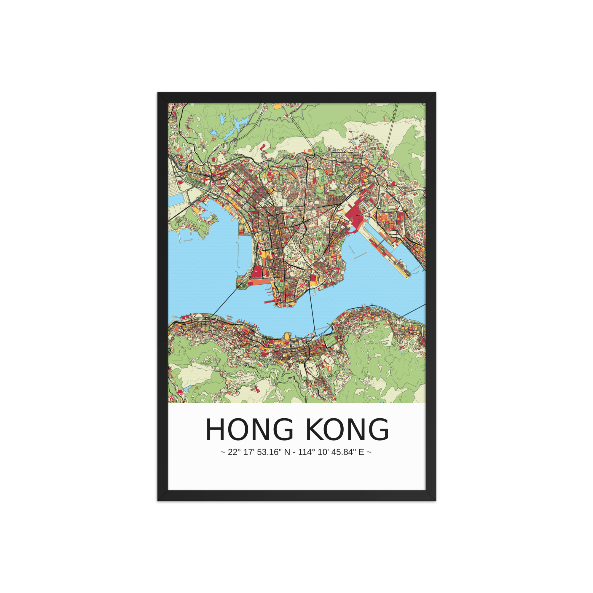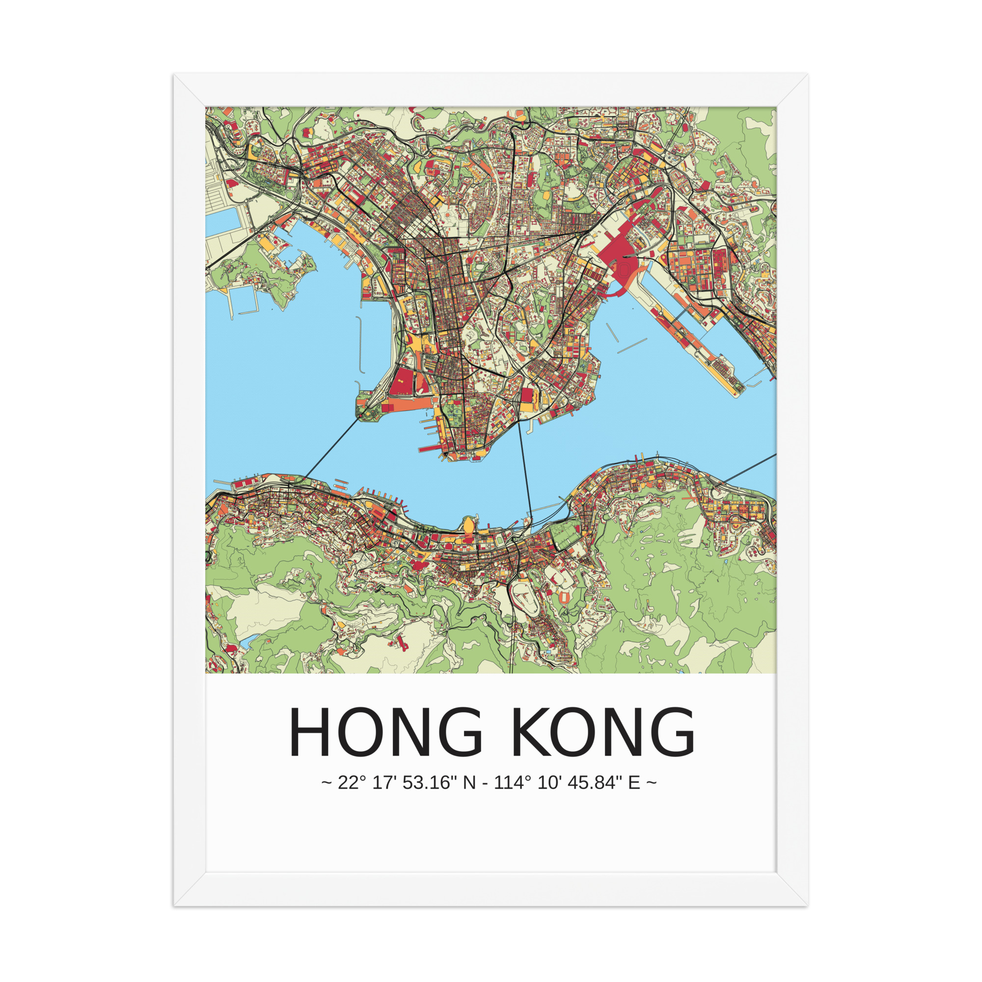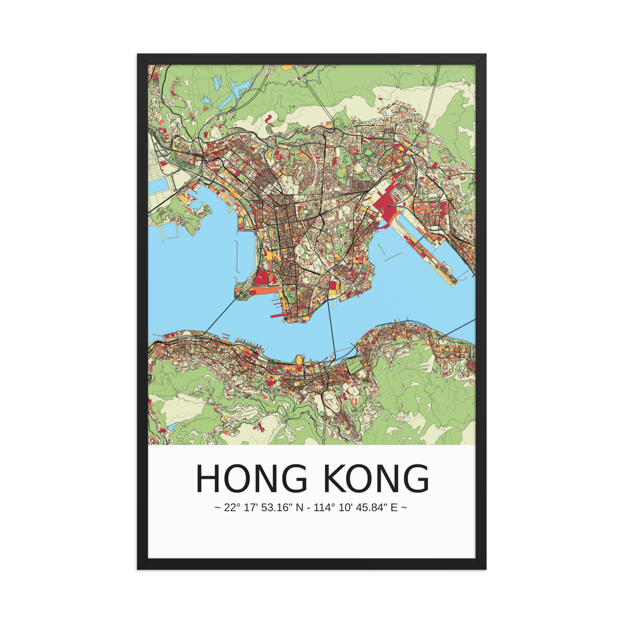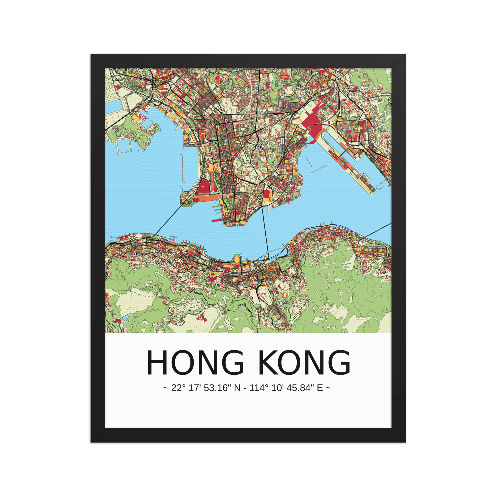 Framed Poster – Hong Kong – Artistic Map – Colourful-Jazzy