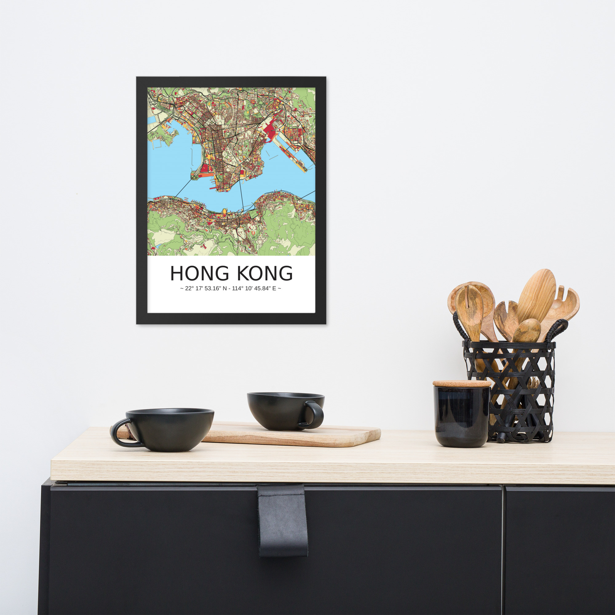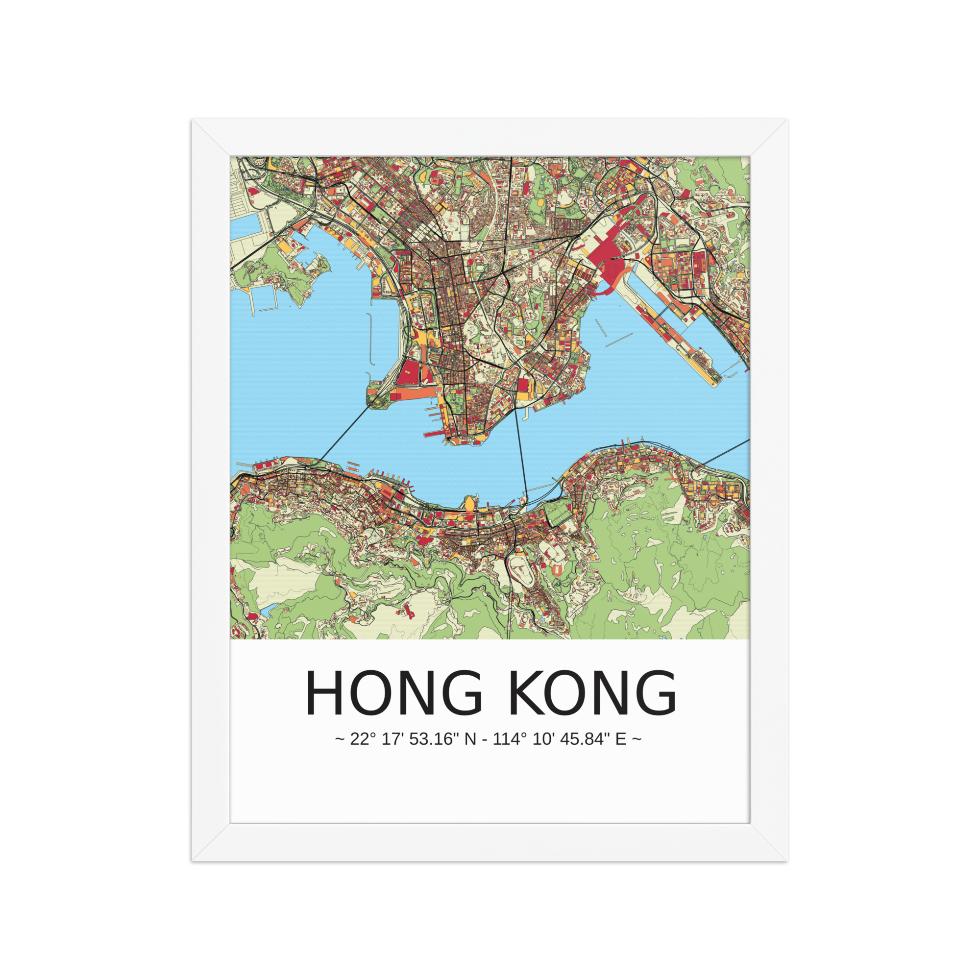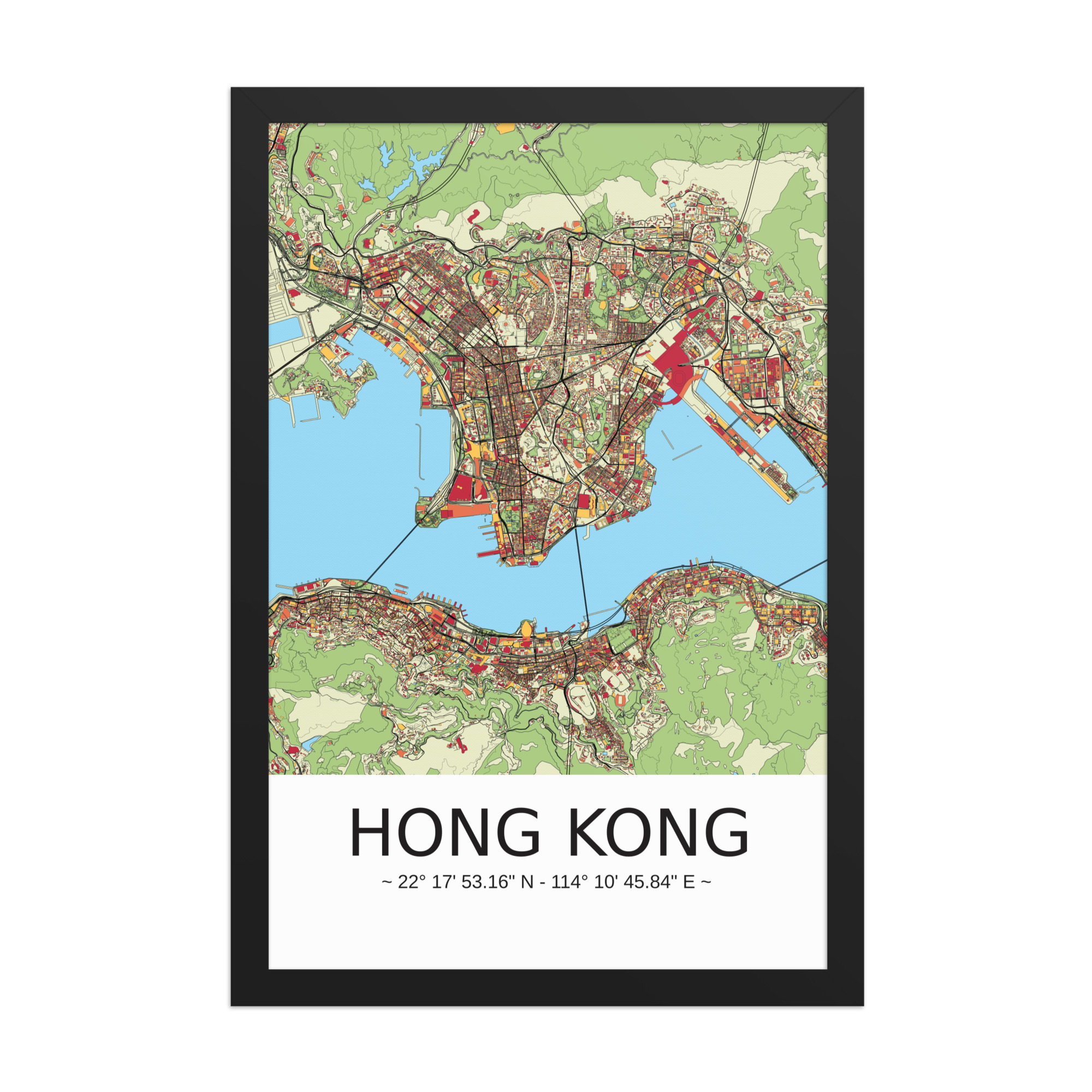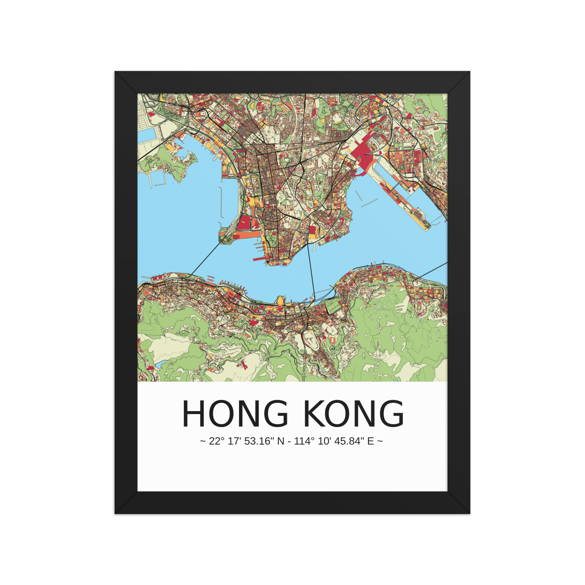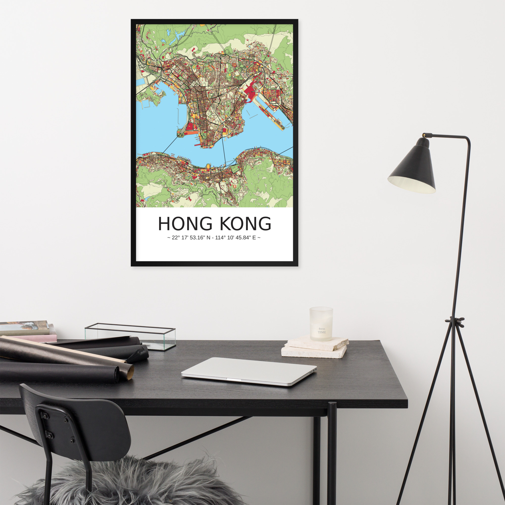 Framed Poster – Hong Kong – Artistic Map – Colourful-Jazzy