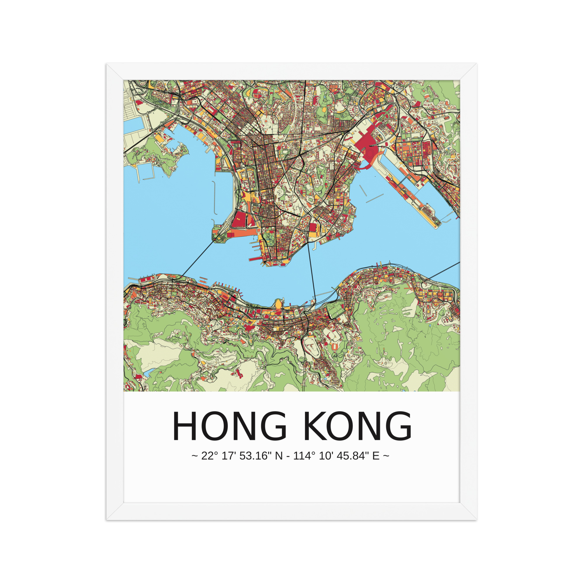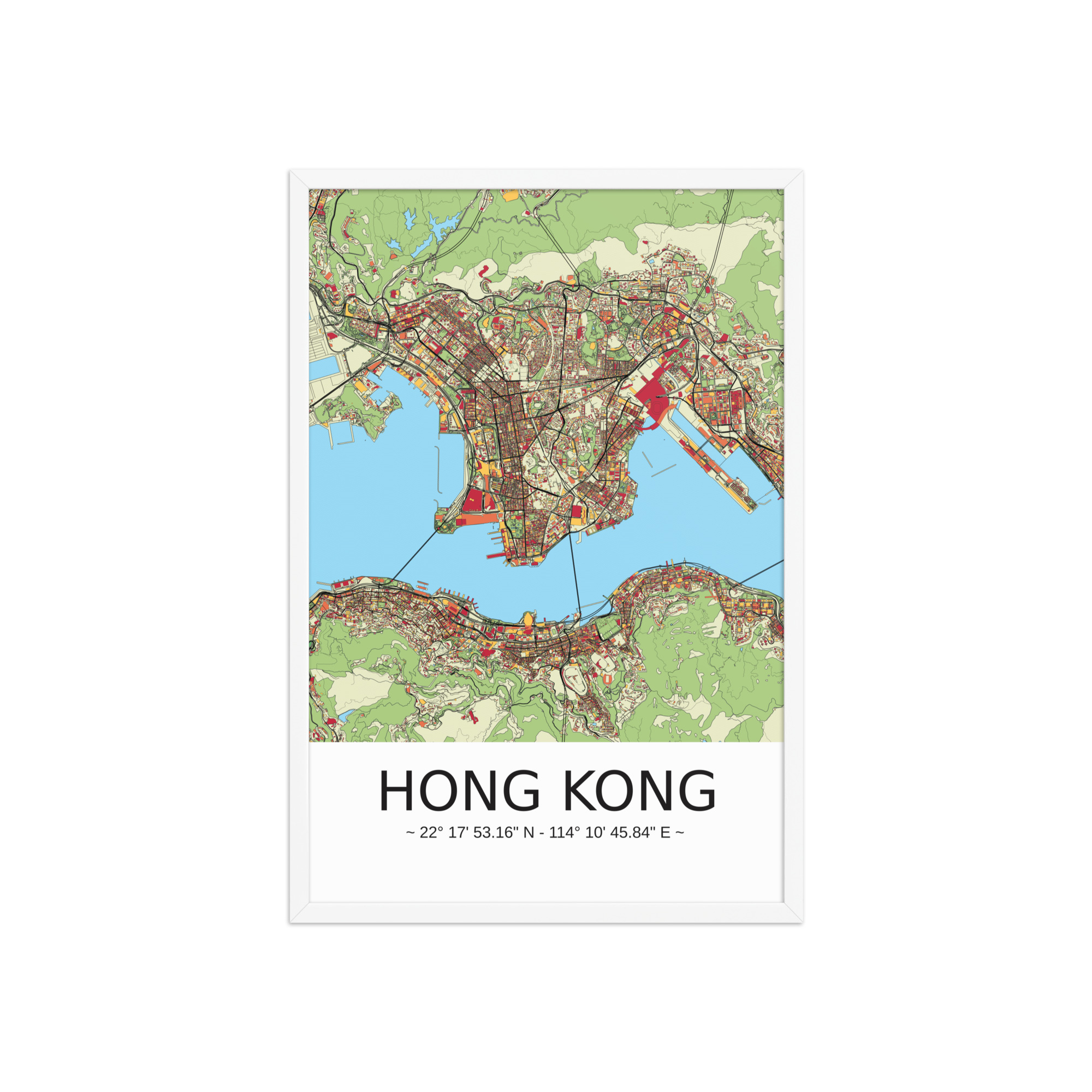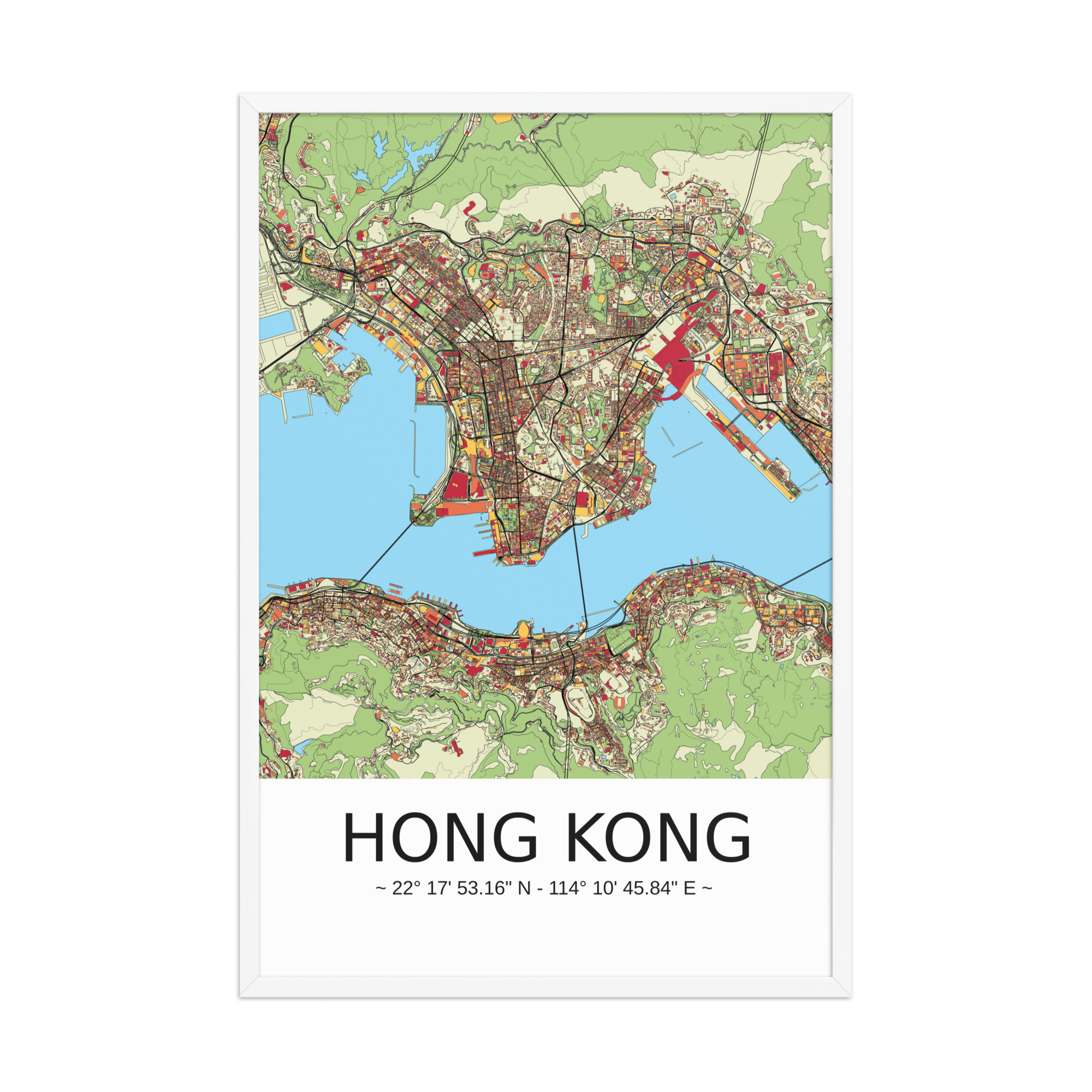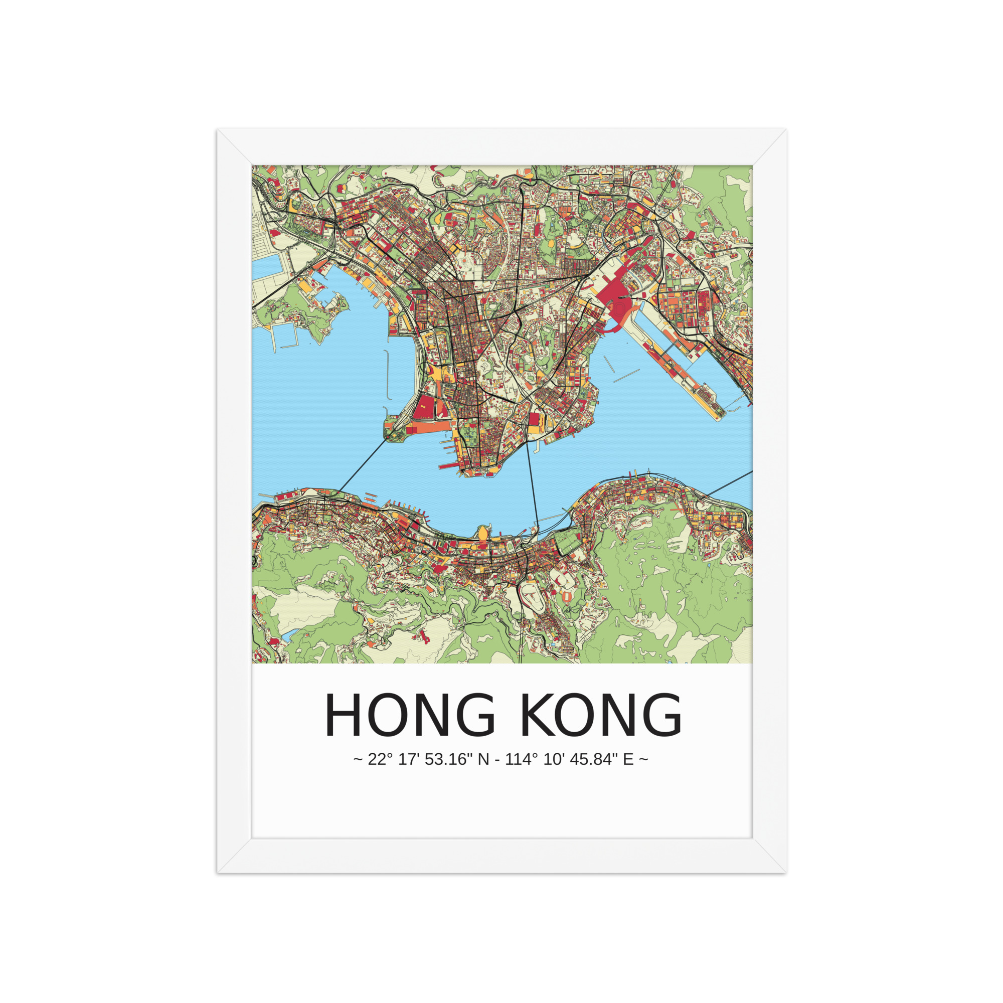 Framed Poster – Hong Kong – Artistic Map – Colourful-Jazzy