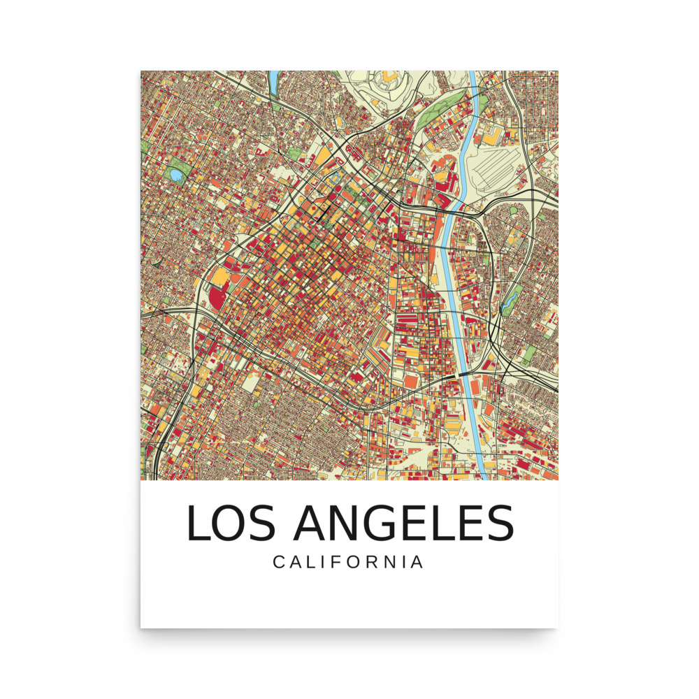 Poster – Los Angeles USA – Artistic Map – Colourful-Jazzy