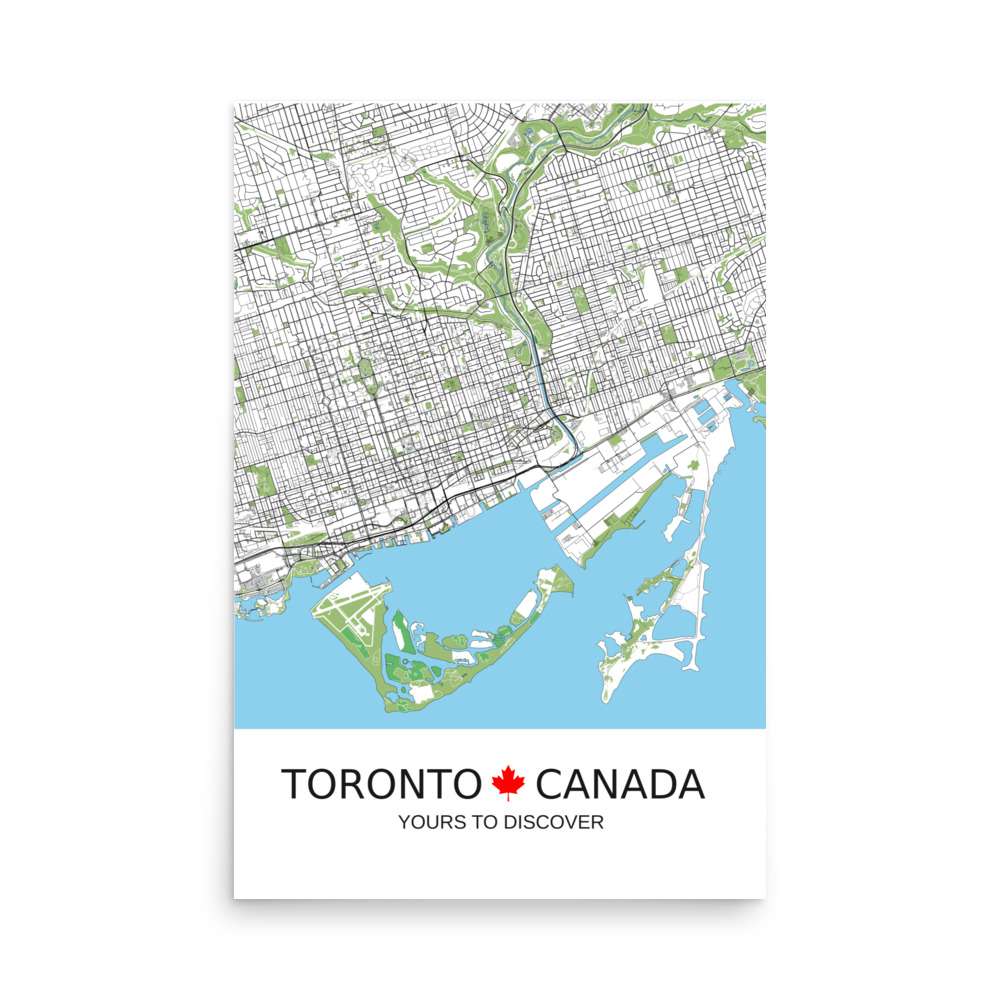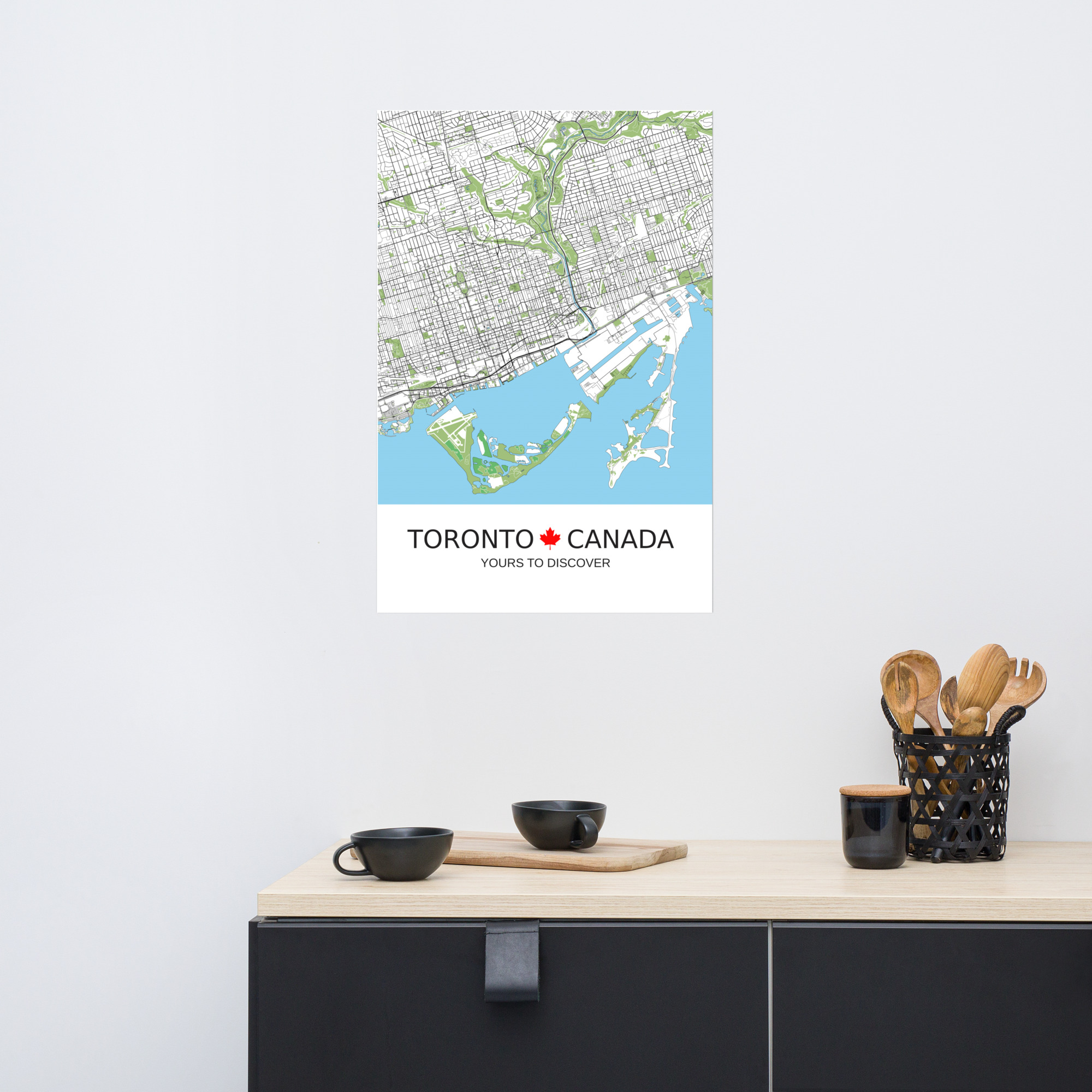 Poster – Toronto Canada – Artistic Map – Green Black White