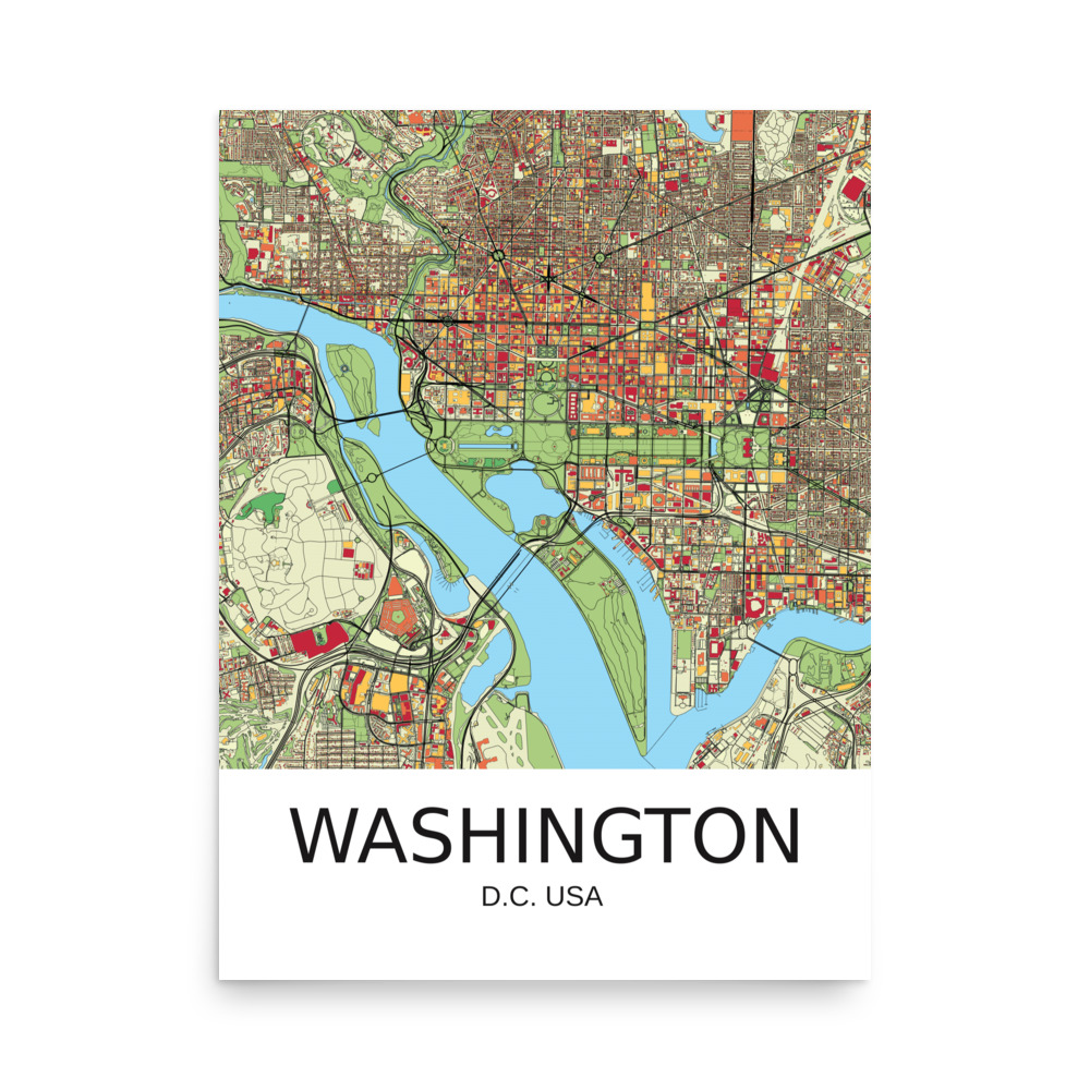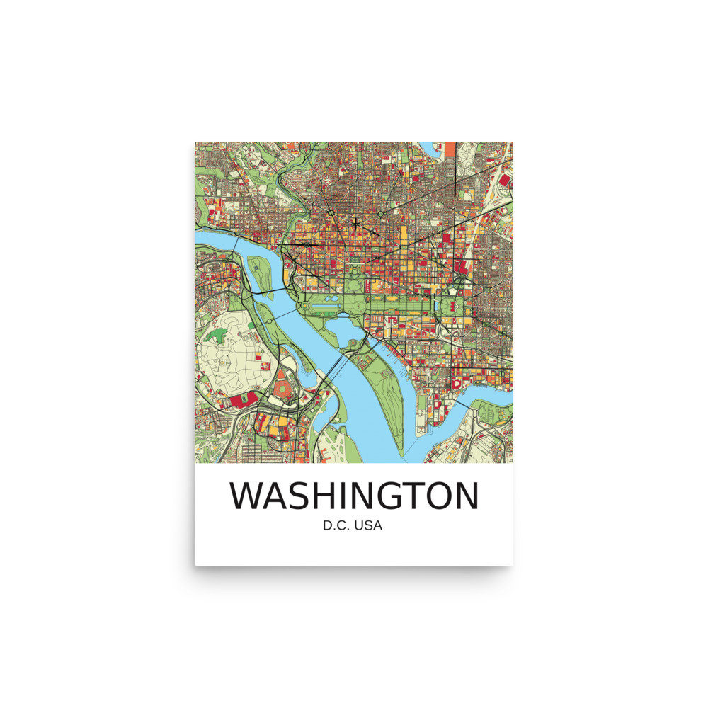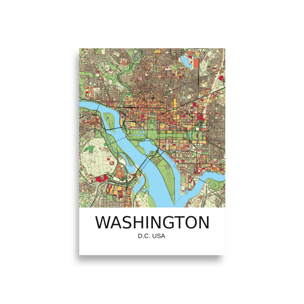 Poster – Washington DC USA – Artistic Map – Colourful-Jazzy