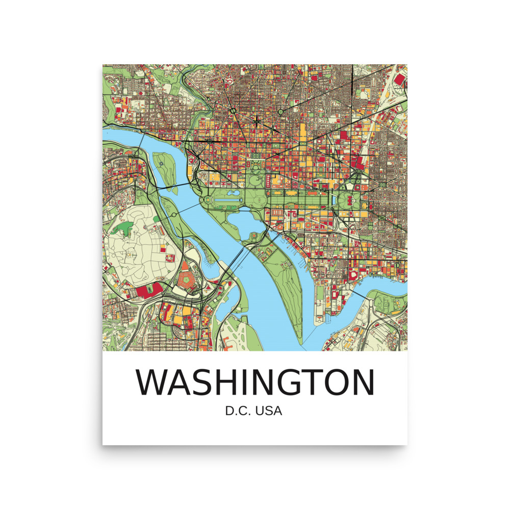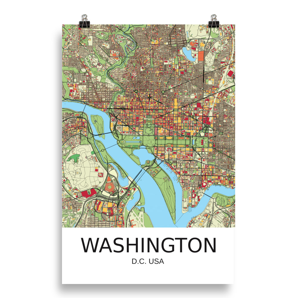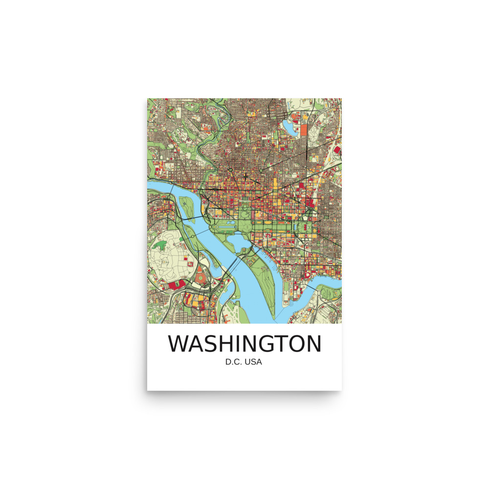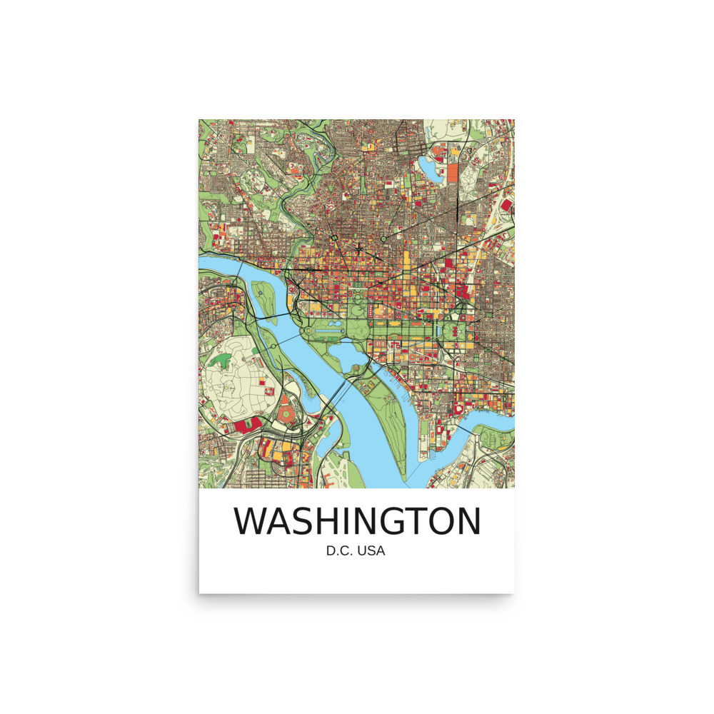 Poster – Washington DC USA – Artistic Map – Colourful-Jazzy